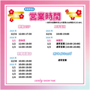 【年末年始】各店舗営業時間のお知らせ